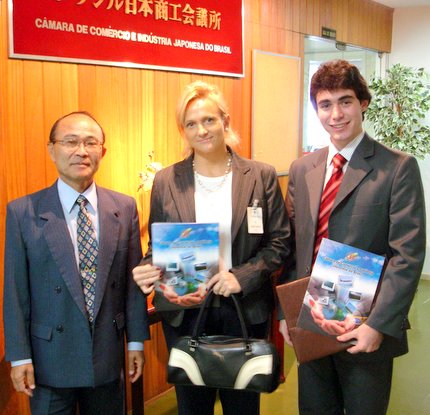 Hirata agradeceu à diretora pela visita e explicou sobre o perfil e as atividades da Câmara Japonesa através do panfleto institucional.