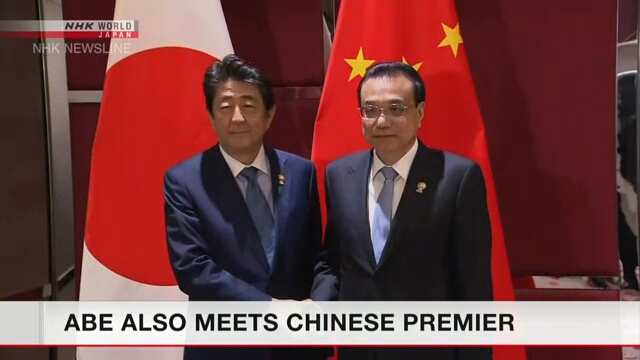 Shinzo Abe e Li Keqiang encontraram-se segunda-feira na Tailândia à margem da reunião de cúpula da Associação de Nações do Sudeste Asiático (Asean).