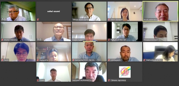 O Departamento de Produtos Químicos, presidente Hiroki Watanabe (Mitsui Chemicals do Brasil), realizou reunião online na manhã da quinta-feira (11), das 9h às 11h30, com 20 participantes. Watanabe foi o mediador do encontro e se apresentaram os vice-presidentes Shingo Nishikaze e seu sucessor, Isao Kameoka (Toyo Ink Brasil), Michio Wakutsu (Nagase do Brasil Comércio de Produtos Químicos), que irá presidir o departamento no próximo ano, Masami Muramatsu (Pilot Pen do Brasil) e Hirofumi Aoki (Sumitomo Chemical do Brasil), que presidiu o departamento no ano passado.
